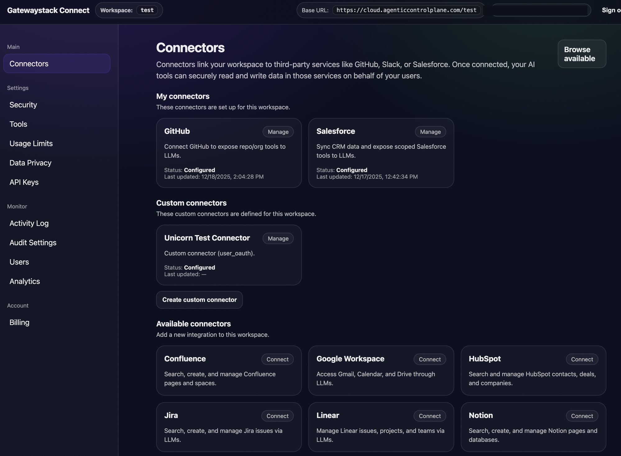 i shipped five new integrations for agenticcontrolplane.com: jira, google workspace (gmail + calendar), notion, linear, and confluence. i also did a bunch of seo cleanup on reducibl.com, and fixed a custom connector bug. a busy day of building and polishing.
